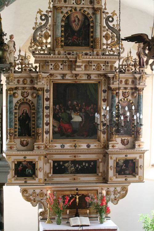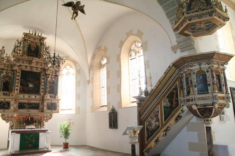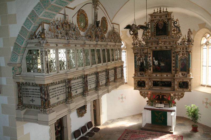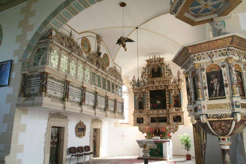 Weniger Meter vom Schloss in Prießnitz entfernt liegt die prächtige Dorfkirche.